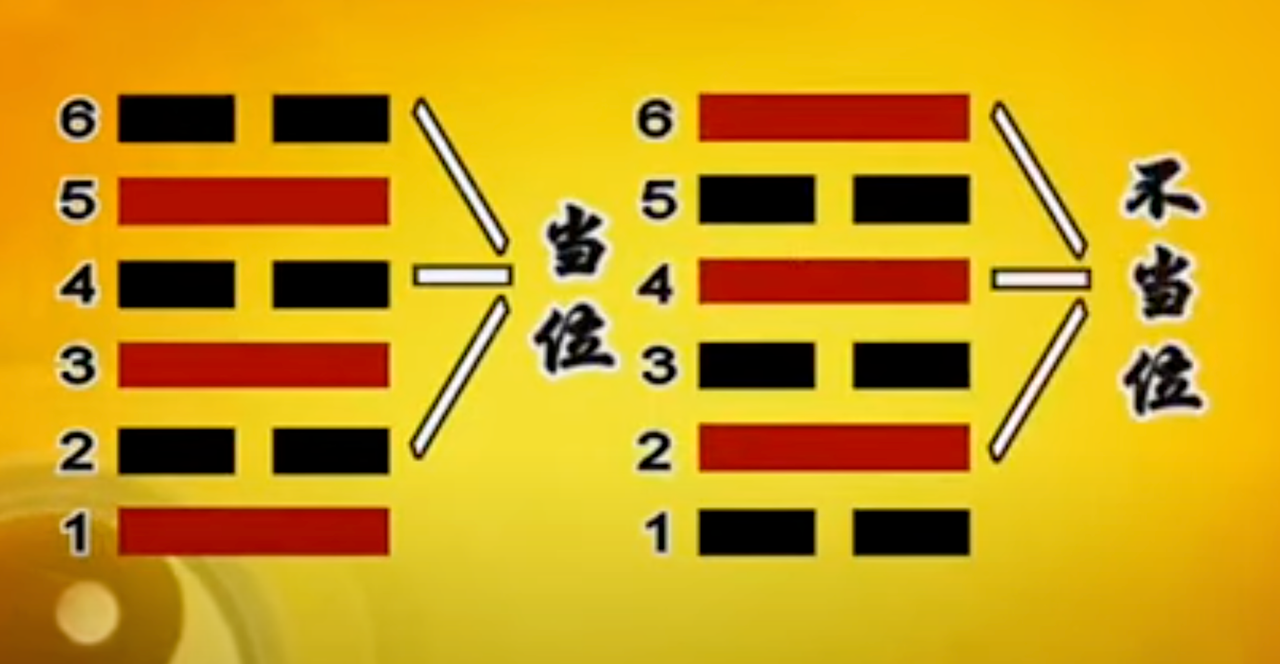 짝수 자리 (2, 4, 6효): 음(陰)의 자리이므로, 음효(⚋)가 오면 '당위'라고 합니다.
