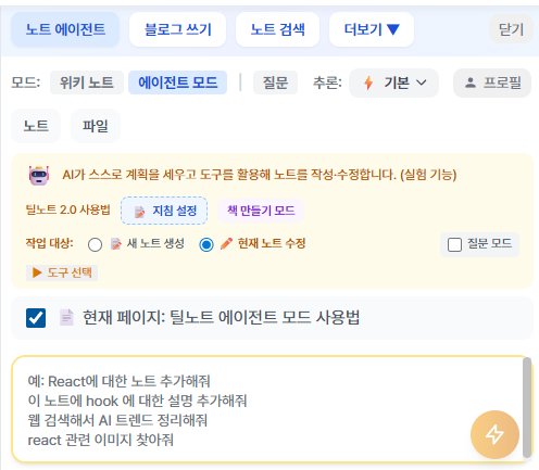 틸노트 노트 에이전트의 에이전트 모드란 무엇일까요?